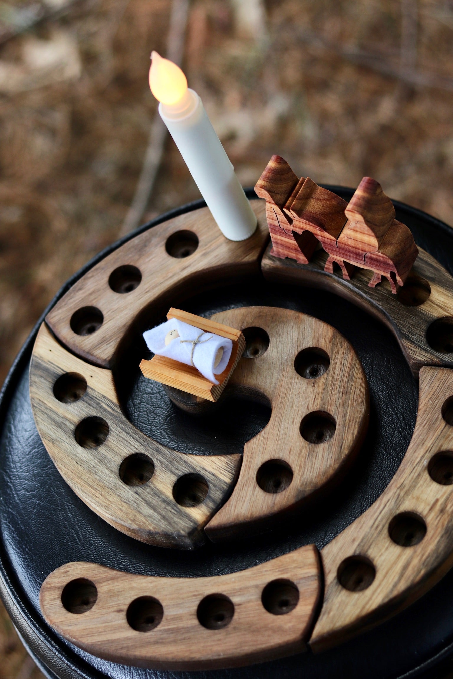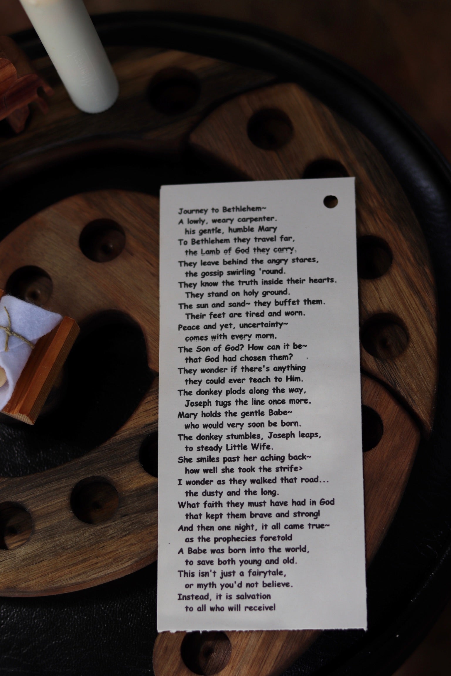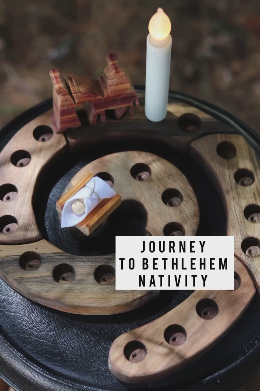 Our Journey to Bethlehem Nativity was designed to be used as an advent countdown. As each new day is begun, the candle can be moved one spot forward, with Joseph and Mary following closely behind. Baby Jesus, in the manger, is placed in the middle. It is a unique decoration to celebrate the coming of Jesus.