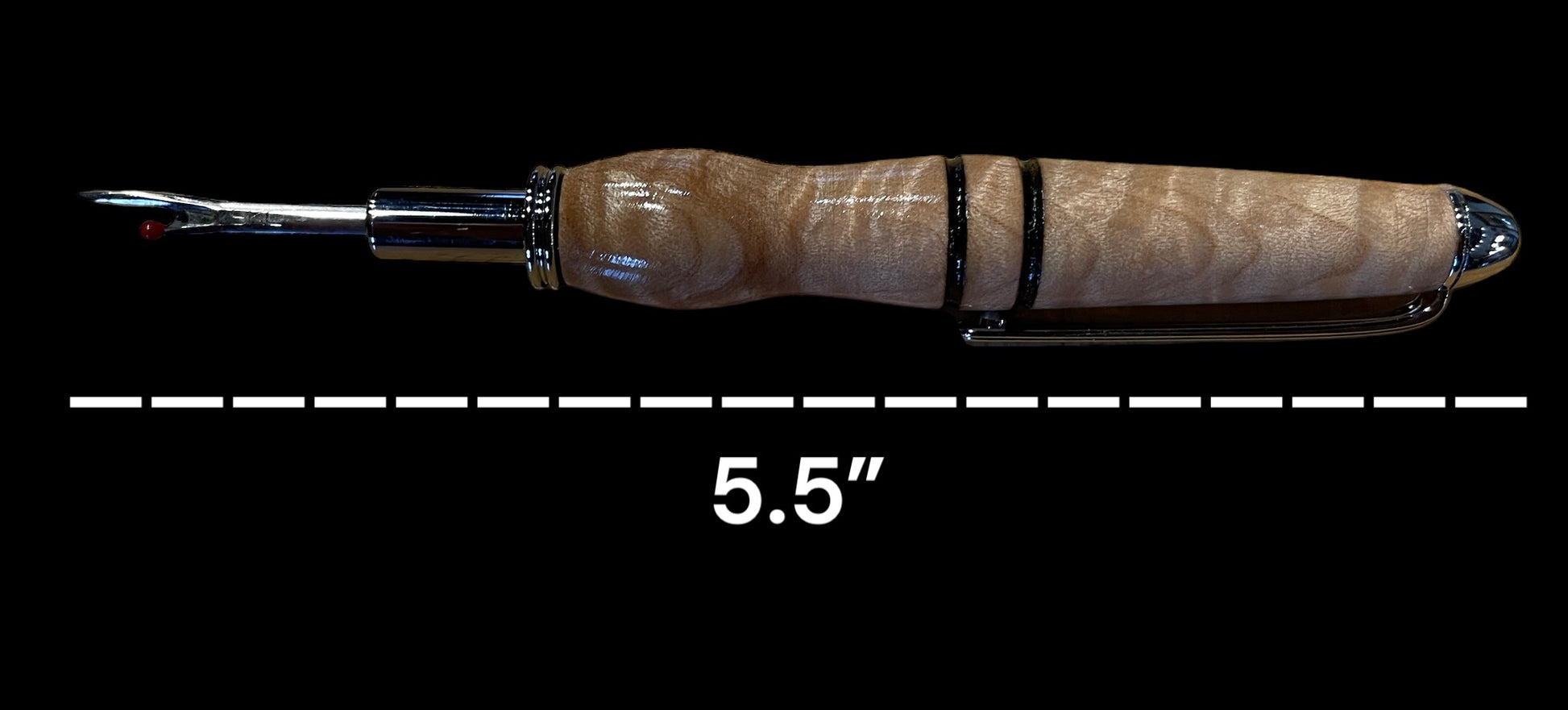 This seam ripper is turned out of maple, a North American hardwood. It does have a hard finish, but the natural color of the wood is carefully preserved. Grains and wood colorations may vary from photos.