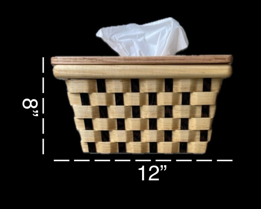 This basket is offered in two different sizes, square and rectangle. Most common tissue boxes will fit into this basket.
